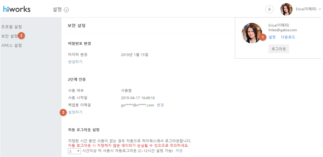 하이웍스 오피스를 더욱 안전하게 사용하실 수 있도록 2단계인증 기능을 추가합니다.