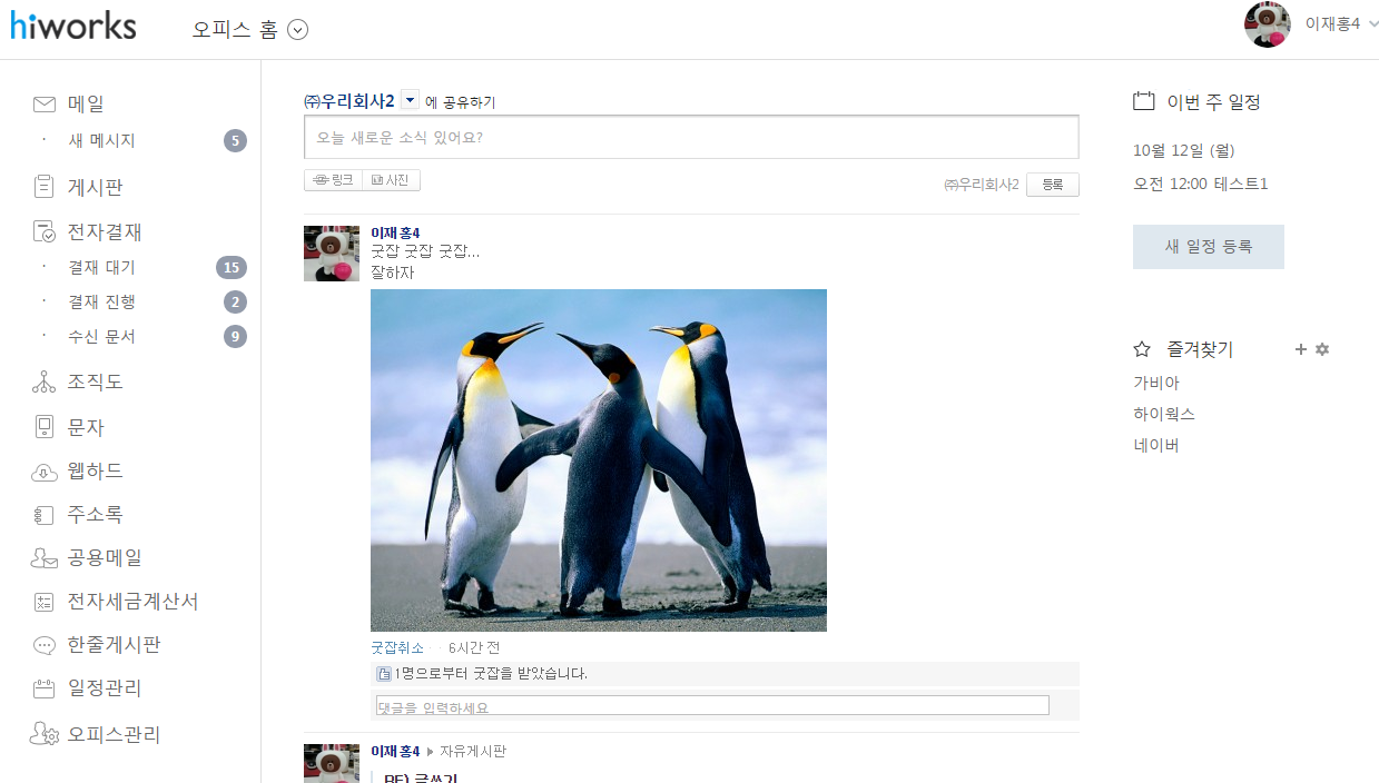 이미 안내한 대로 금일 (10월 14일) 하이웍스가 새로운 모습으로 개편될 예정입니다.