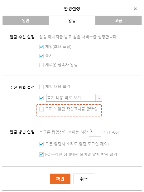 2. 오피스 메신저 알림 작업표시줄 깜빡임