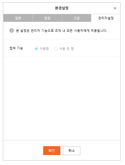 이곳에서 오피스 관리자가 메신저 캡처기능의 허용 여부를 선택할 수 있으며, 해당 설정은 오피스 사용자 전체에게 적용됩니다.