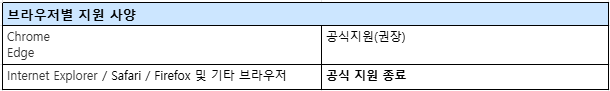서비스 안정성을 위해 불가피한 결정으로, 더욱 안전하고 원할한 서비스 사용을 위해 아래 공식 지원 환경의 최신 버전 사용을 권장드립니다.