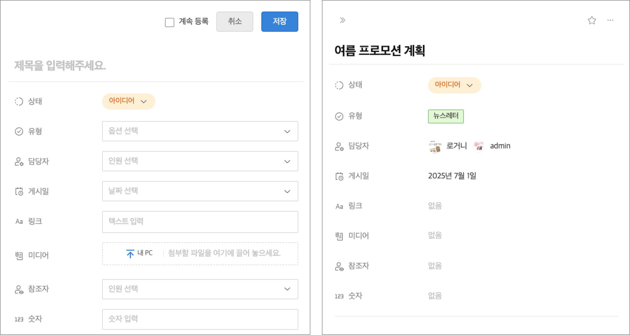 1) 데이터 등록/상세 화면 레이아웃 및 편집 모듈 UX 개선