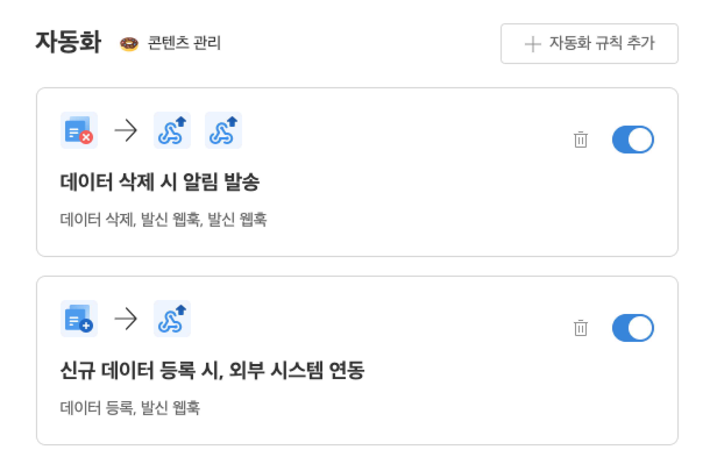 - 예를 들어, 데이터가 등록되거나 삭제되는 이벤트가 발생하면, 이를 감지해 외부 시스템으로 웹훅을 발송하거나, 지정된 데이터를 자동 생성할 수 있습니다.