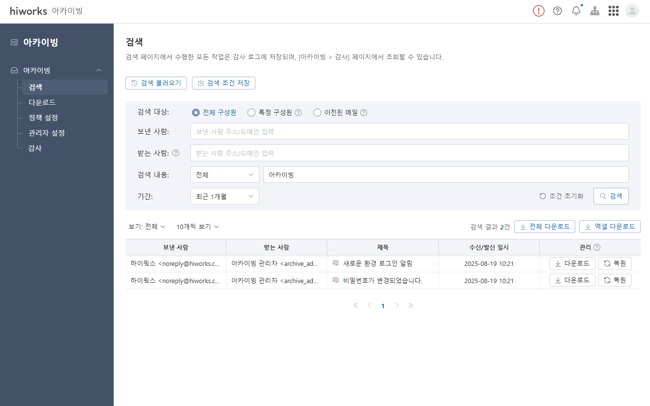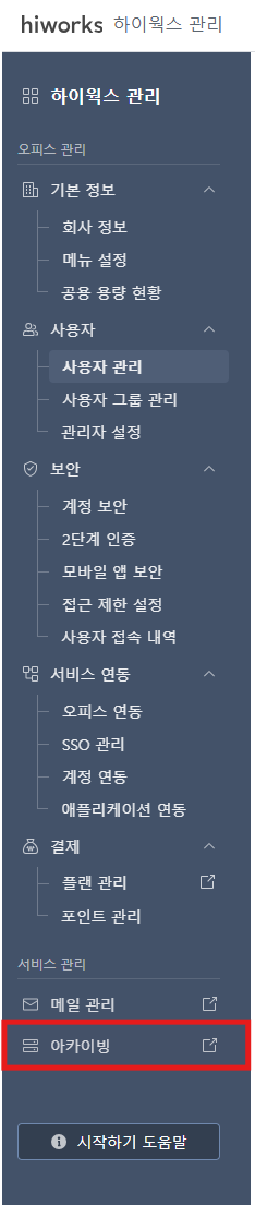 * 아카이빙 개편 내역은 하이웍스 신규 상품 이용 고객의 경우 9월 말, 구 상품 이용 고객의 경우 10월 중 순차적으로 적용됩니다.
